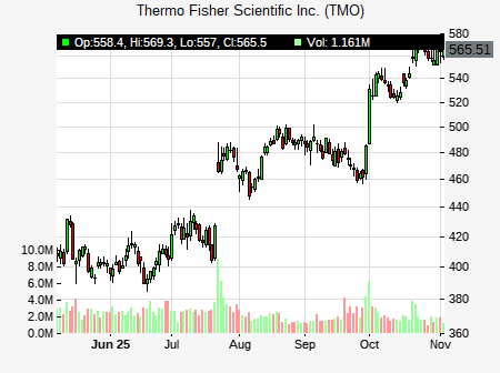 | 2023-07-13 | Thermo Fisher | Credit Suisse | 620.00 | 620.00 | 525.63 | -6.96% |