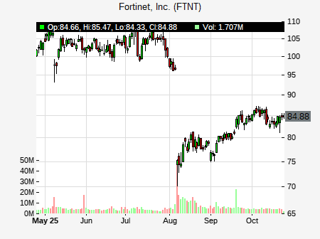Stephen Bersey from HSBC issued a price target of $54.00 for FTNT on 2024-05-03 08:05:00. The adjusted price target was set to $54.00. At the time of the announcement, FTNT was trading at $65.2. The overall price target consensus is at $71.61 with high price of $85.00, low price of $57.00, and median price is at $70.30. FTNT currently trades -19.75% versus its 52 week high of $81.24, and 44.12% compared to its 52 week low price of $44.12. Current 50 day moving average is $66.75, and the 200 day moving average is $61.91.