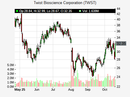 Barclays analyst issues OVERWEIGHT recommendation for TWST on June 28, 2024 05:29AM ET. The previous analyst recommendation was Overweight. TWST was trading at $47.48 at issue of the analyst recommendation. The overall analyst consensus : BUY. Current analyst recommendations are : 7 - Buy recommendations .