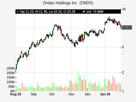 from Lake Street issued a price target of $19.00 for ONDS on 2026-01-20 13:44:42. The adjusted price target was set to $19.00. At the time of the announcement, ONDS was trading at $13.41. The overall price target consensus is at $16.50 with high price of $25.00, low price of $10.00, and median price is at $16.50. ONDS currently trades 15.00% versus its 52 week high of $11.70, and 0.66% compared to its 52 week low price of $0.66. Current 50 day moving average is $7.64, and the 200 day moving average is $3.42.