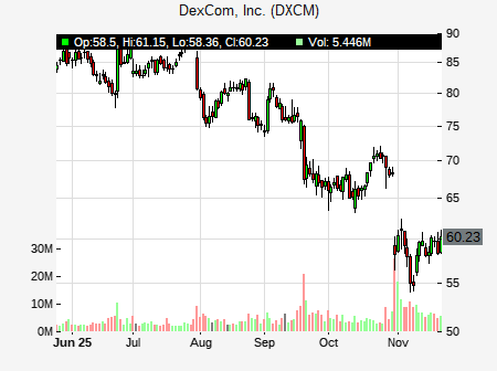 from Morgan Stanley issued a price target of $63.00 for DXCM on 2025-11-10 17:14:01. The adjusted price target was set to $63.00. At the time of the announcement, DXCM was trading at $55.21. The overall price target consensus is at $86.50 with high price of $99.00, low price of $75.00, and median price is at $84.50. DXCM currently trades -40.73% versus its 52 week high of $93.25, and 58.02% compared to its 52 week low price of $58.02. Current 50 day moving average is $69.24, and the 200 day moving average is $77.58.