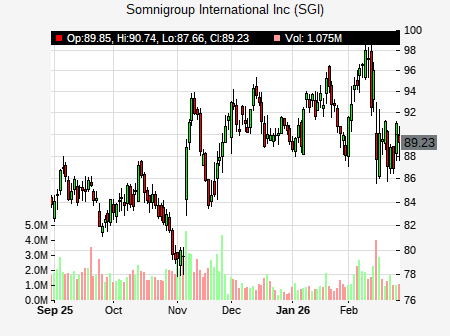 from Jefferies issued a price target of $90.00 for SGI on 2026-02-17 19:42:17. The adjusted price target was set to $90.00. At the time of the announcement, SGI was trading at $87.785. The overall price target consensus is at $122.00 with high price of $122.00, low price of $122.00, and median price is at $122.00. SGI currently trades -6.58% versus its 52 week high of $93.85, and 53.45% compared to its 52 week low price of $53.45. Current 50 day moving average is $84.83, and the 200 day moving average is $71.92.