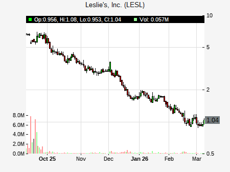from Morgan Stanley issued a price target of $3.50 for LESL on 2025-12-10 14:27:10. The adjusted price target was set to $3.50. At the time of the announcement, LESL was trading at $2.97. The overall price target consensus is at $4.69 with high price of $7.00, low price of $3.00, and median price is at $4.38. LESL currently trades -94.88% versus its 52 week high of $58.00, and 2.87% compared to its 52 week low price of $2.87. Current 50 day moving average is $4.20, and the 200 day moving average is $10.71.