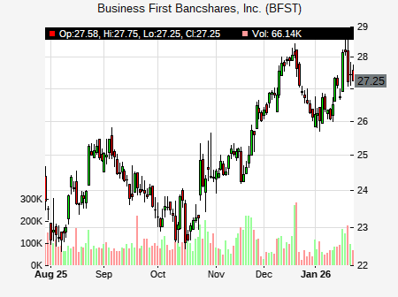 Raymond James analyst issues OUTPERFORM recommendation for BFST on January 7, 2026 10:54AM ET. The previous analyst recommendation was Outperform. BFST was trading at $26.28 at issue of the analyst recommendation. The overall analyst consensus : BUY. Current analyst recommendations are : 4 - Buy recommendations .