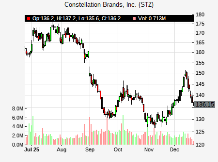 from Jefferies issued a price target of $154.00 for STZ on 2025-12-16 23:19:52. The adjusted price target was set to $154.00. At the time of the announcement, STZ was trading at $142.59. The overall price target consensus is at $172.44 with high price of $209.00, low price of $135.00, and median price is at $170.00. STZ currently trades -40.23% versus its 52 week high of $239.24, and 127.96% compared to its 52 week low price of $127.96. Current 50 day moving average is $134.28, and the 200 day moving average is $161.53.