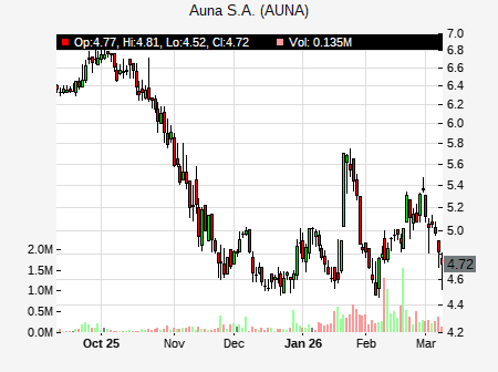 Samuel Alves from BTG Pactual issued a price target of $7.00 for AUNA on 2026-02-06 02:05:43. The adjusted price target was set to $7.00. At the time of the announcement, AUNA was trading at $4.51. The overall price target consensus is at $7.95 with high price of $9.00, low price of $6.90, and median price is at $7.95. AUNA currently trades -51.52% versus its 52 week high of $9.24, and 4.48% compared to its 52 week low price of $4.48. Current 50 day moving average is $5.24, and the 200 day moving average is $6.25.