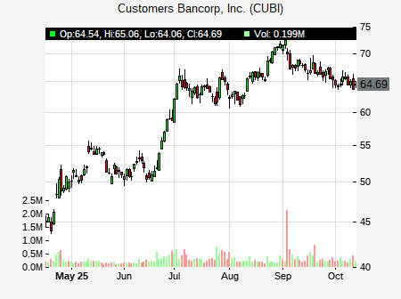 Raymond James analyst issues STRONG BUY recommendation for CUBI on October 2, 2024 09:54AM ET. The previous analyst recommendation was Strong Buy. CUBI was trading at $44.37 at issue of the analyst recommendation. The overall analyst consensus : BUY. Current analyst recommendations are : 3 - Buy, 3 - Hold recommendations .
