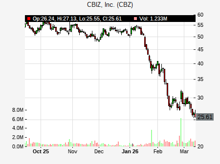 from Deutsche Bank issued a price target of $60.00 for CBZ on 2026-01-12 11:50:26. The adjusted price target was set to $60.00. At the time of the announcement, CBZ was trading at $54.75. CBZ currently trades -39.26% versus its 52 week high of $90.13, and 49.77% compared to its 52 week low price of $49.77. Current 50 day moving average is $53.13, and the 200 day moving average is $66.81.