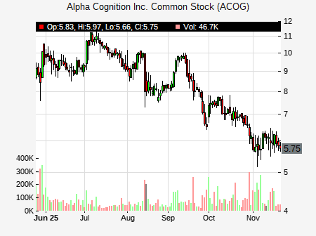 from H.C. Wainwright issued a price target of $18.00 for ACOG on 2025-10-20 12:20:24. The adjusted price target was set to $18.00. At the time of the announcement, ACOG was trading at $6.8. ACOG currently trades -41.07% versus its 52 week high of $11.54, and 3.81% compared to its 52 week low price of $3.81. Current 50 day moving average is $9.48, and the 200 day moving average is $7.05.