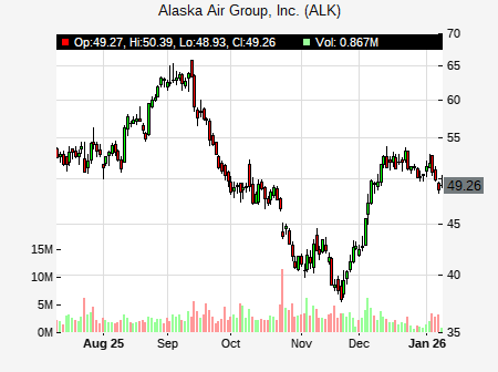 from UBS issued a price target of $77.00 for ALK on 2025-12-12 10:42:30. The adjusted price target was set to $77.00. At the time of the announcement, ALK was trading at $52.57. The overall price target consensus is at $67.75 with high price of $83.00, low price of $58.00, and median price is at $65.00. ALK currently trades -32.59% versus its 52 week high of $78.08, and 38.31% compared to its 52 week low price of $38.31. Current 50 day moving average is $46.22, and the 200 day moving average is $52.36.