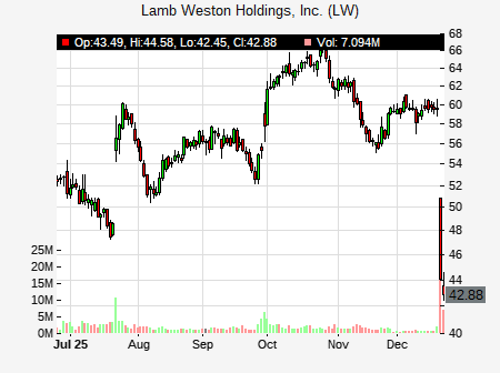 from Stifel Nicolaus issued a price target of $50.00 for LW on 2025-12-22 01:50:55. The adjusted price target was set to $50.00. At the time of the announcement, LW was trading at $43.94. The overall price target consensus is at $61.00 with high price of $68.00, low price of $50.00, and median price is at $65.00. LW currently trades -46.20% versus its 52 week high of $81.86, and 47.62% compared to its 52 week low price of $47.62. Current 50 day moving average is $60.44, and the 200 day moving average is $54.95.