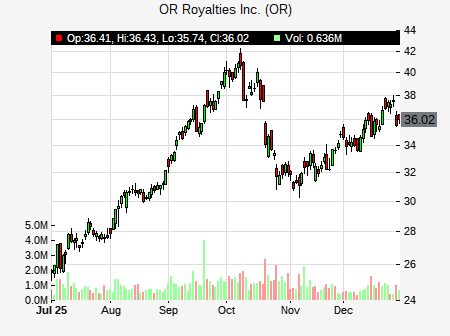 Raymond James analyst issues OUTPERFORM recommendation for OR on November 6, 2025 04:31PM ET. The previous analyst recommendation was Market Perform. OR was trading at $31.07 at issue of the analyst recommendation. The overall analyst consensus : BUY. Current analyst recommendations are : 5 - Buy, 4 - Hold recommendations .