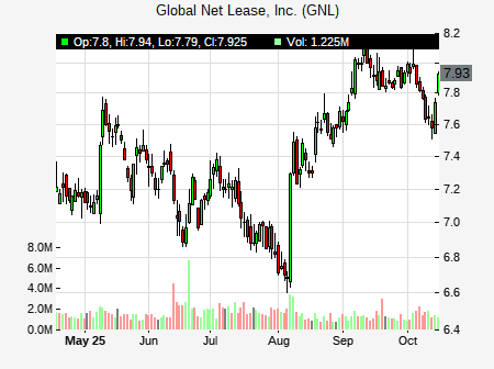 Anthony Hau from Truist Financial issued a price target of $8.00 for GNL on 2024-11-29 12:12:00. The adjusted price target was set to $8.00. At the time of the announcement, GNL was trading at $7.625. The overall price target consensus is at $12.88 with high price of $21.00, low price of $8.50, and median price is at $11.00. GNL currently trades -27.18% versus its 52 week high of $10.19, and 6.52% compared to its 52 week low price of $6.52. Current 50 day moving average is $7.88, and the 200 day moving average is $8.03.