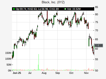 Rayna Kumar from Oppenheimer issued a price target of $85.00 for XYZ on 2025-11-07 13:41:41. The adjusted price target was set to $85.00. At the time of the announcement, XYZ was trading at $63.01. The overall price target consensus is at $81.85 with high price of $95.00, low price of $65.00, and median price is at $80.00. XYZ currently trades -36.18% versus its 52 week high of $99.26, and 45.33% compared to its 52 week low price of $45.33. Current 50 day moving average is $76.11, and the 200 day moving average is $69.06.