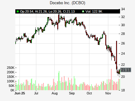 from Morgan Stanley issued a price target of $28.00 for DCBO on 2025-11-10 17:15:01. The adjusted price target was set to $28.00. At the time of the announcement, DCBO was trading at $23.451. The overall price target consensus is at $36.00 with high price of $37.00, low price of $35.00, and median price is at $36.00. DCBO currently trades -56.34% versus its 52 week high of $53.86, and 24.52% compared to its 52 week low price of $24.52. Current 50 day moving average is $28.06, and the 200 day moving average is $30.50.