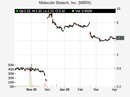 Roth Capital analyst issues BUY recommendation for MBRX on December 15, 2025 05:17PM ET. The previous analyst recommendation was Buy. MBRX was trading at $4.63 at issue of the analyst recommendation. The overall analyst consensus : BUY. Current analyst recommendations are : 4 - Buy recommendations .