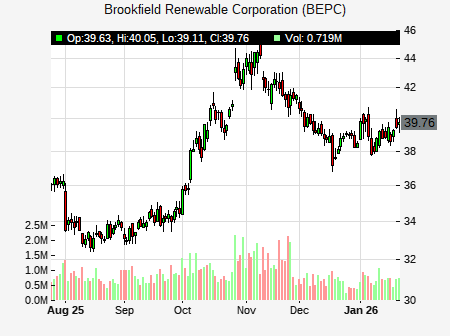 from Barclays issued a price target of $36.00 for BEPC on 2026-01-23 10:53:21. The adjusted price target was set to $36.00. At the time of the announcement, BEPC was trading at $39.38. The overall price target consensus is at $37.00 with high price of $39.00, low price of $35.00, and median price is at $37.00. BEPC currently trades -12.56% versus its 52 week high of $45.10, and 23.18% compared to its 52 week low price of $23.18. Current 50 day moving average is $40.87, and the 200 day moving average is $33.83.