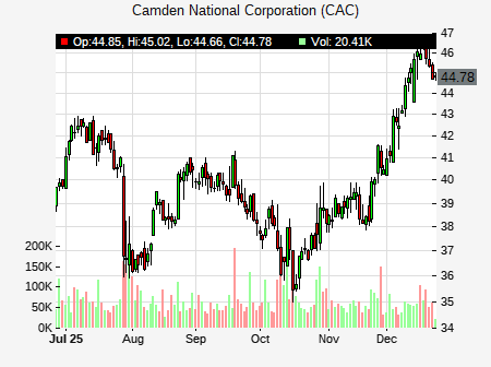 Damon DelMonte from National Bank issued a price target of $45.00 for CAC on 2025-10-29 09:48:39. The adjusted price target was set to $45.00. At the time of the announcement, CAC was trading at $37.71. The overall price target consensus is at $70.50 with high price of $100.00, low price of $41.00, and median price is at $70.50. CAC currently trades -21.47% versus its 52 week high of $48.02, and 34.26% compared to its 52 week low price of $34.26. Current 50 day moving average is $38.64, and the 200 day moving average is $39.62.