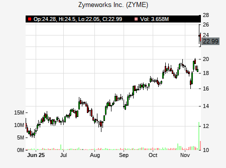 Andrew Berens from Leerink Partners issued a price target of $37.00 for ZYME on 2025-11-17 19:36:58. The adjusted price target was set to $37.00. At the time of the announcement, ZYME was trading at $23.9. The overall price target consensus is at $26.00 with high price of $26.00, low price of $26.00, and median price is at $26.00. ZYME currently trades 18.82% versus its 52 week high of $20.17, and 9.43% compared to its 52 week low price of $9.43. Current 50 day moving average is $17.40, and the 200 day moving average is $13.98.