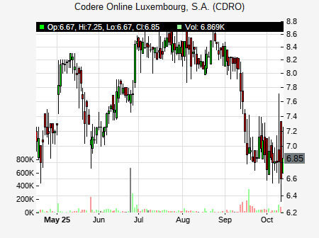 Jeff Stantial from Stifel Nicolaus issued a price target of $9.00 for CDRO on 2024-05-16 07:41:00. The adjusted price target was set to $9.00. At the time of the announcement, CDRO was trading at $7.475. CDRO currently trades -8.50% versus its 52 week high of $7.51, and 2.15% compared to its 52 week low price of $2.15. Current 50 day moving average is $5.17, and the 200 day moving average is $3.64.