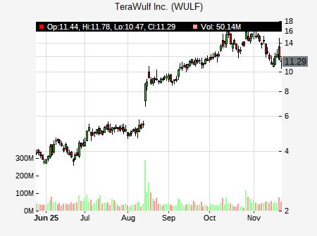 from JMP Securities issued a price target of $22.00 for WULF on 2025-10-29 09:41:23. The adjusted price target was set to $22.00. At the time of the announcement, WULF was trading at $15.94. The overall price target consensus is at $18.50 with high price of $21.50, low price of $16.25, and median price is at $18.13. WULF currently trades -6.51% versus its 52 week high of $17.05, and 2.22% compared to its 52 week low price of $2.22. Current 50 day moving average is $11.43, and the 200 day moving average is $6.00.