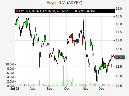 Monness analyst issues BUY recommendation for ADYEY on August 15, 2025 01:10PM ET. The previous analyst recommendation was Buy. ADYEY was trading at $16.305 at issue of the analyst recommendation. The overall analyst consensus : HOLD. Current analyst recommendations are : 1 - Hold recommendations .