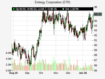 from Barclays issued a price target of $96.00 for ETR on 2026-01-15 10:55:41. The adjusted price target was set to $96.00. At the time of the announcement, ETR was trading at $95.17. The overall price target consensus is at $103.17 with high price of $115.00, low price of $91.00, and median price is at $104.00. ETR currently trades -2.99% versus its 52 week high of $97.92, and 71.61% compared to its 52 week low price of $71.61. Current 50 day moving average is $94.20, and the 200 day moving average is $86.17.
