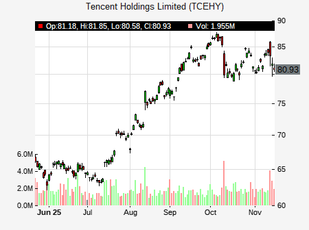 from Barclays issued a price target of $102.00 for TCEHY on 2025-11-14 10:21:42. The adjusted price target was set to $102.00. At the time of the announcement, TCEHY was trading at $83.34. The overall price target consensus is at $116.00 with high price of $144.00, low price of $88.00, and median price is at $116.00. TCEHY currently trades -4.95% versus its 52 week high of $87.68, and 46.52% compared to its 52 week low price of $46.52. Current 50 day moving average is $82.70, and the 200 day moving average is $69.52.