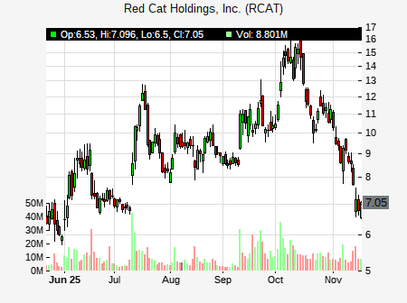 from Needham issued a price target of $12.00 for RCAT on 2025-11-14 13:50:37. The adjusted price target was set to $12.00. At the time of the announcement, RCAT was trading at $7.265. The overall price target consensus is at $16.50 with high price of $17.00, low price of $16.00, and median price is at $16.50. RCAT currently trades -56.14% versus its 52 week high of $16.70, and 3.85% compared to its 52 week low price of $3.85. Current 50 day moving average is $11.02, and the 200 day moving average is $8.34.