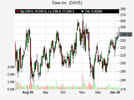 Benchmark analyst issues BUY recommendation for DAVE on October 1, 2025 01:03PM ET. The previous analyst recommendation was Buy. DAVE was trading at $208.07 at issue of the analyst recommendation. The overall analyst consensus : BUY. Current analyst recommendations are : 8 - Buy, 1 - Hold recommendations .