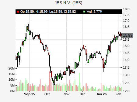 UBS analyst issues BUY recommendation for JBS on February 5, 2026 09:57PM ET. JBS was trading at $15.73 at issue of the analyst recommendation. The overall analyst consensus : BUY. Current analyst recommendations are : 2 - Buy recommendations .
