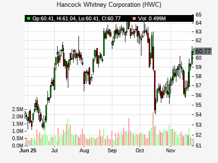 from Raymond James issued a price target of $72.00 for HWC on 2025-10-15 11:32:35. The adjusted price target was set to $72.00. At the time of the announcement, HWC was trading at $62.53. The overall price target consensus is at $62.00 with high price of $62.00, low price of $62.00, and median price is at $62.00. HWC currently trades -3.29% versus its 52 week high of $64.66, and 43.80% compared to its 52 week low price of $43.80. Current 50 day moving average is $61.77, and the 200 day moving average is $56.49.
