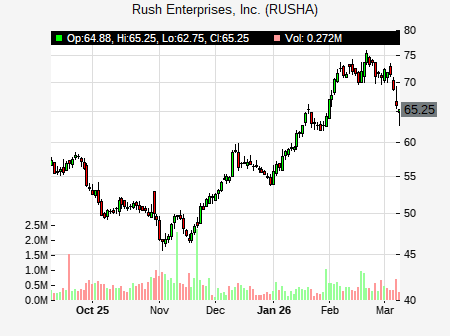 UBS analyst issues NEUTRAL recommendation for RUSHA on January 28, 2026 11:12AM ET. RUSHA was trading at $62.72 at issue of the analyst recommendation. The overall analyst consensus : BUY. Current analyst recommendations are : 8 - Buy, 8 - Hold recommendations .