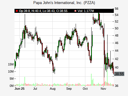 Dennis Geiger from UBS issued a price target of $42.00 for PZZA on 2025-11-10 15:21:00. The adjusted price target was set to $42.00. At the time of the announcement, PZZA was trading at $43.4. The overall price target consensus is at $45.33 with high price of $50.00, low price of $42.00, and median price is at $44.00. PZZA currently trades -22.87% versus its 52 week high of $56.59, and 29.71% compared to its 52 week low price of $29.71. Current 50 day moving average is $48.22, and the 200 day moving average is $43.85.