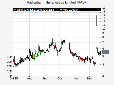 Michael Okunewitch from Maxim Group issued a price target of $15.00 for RADX on 2025-12-17 13:45:21. The adjusted price target was set to $15.00. At the time of the announcement, RADX was trading at $5.7. The overall price target consensus is at $13.00 with high price of $13.00, low price of $13.00, and median price is at $13.00. RADX currently trades -88.78% versus its 52 week high of $50.82, and 3.70% compared to its 52 week low price of $3.70. Current 50 day moving average is $5.38, and the 200 day moving average is $5.10.