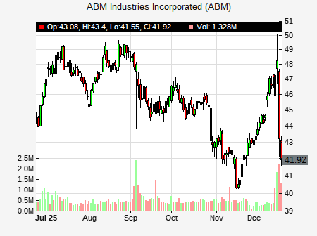 Andrew Wittmann from Robert W. Baird issued a price target of $52.00 for ABM on 2025-12-18 13:43:48. The adjusted price target was set to $52.00. At the time of the announcement, ABM was trading at $45.89. The overall price target consensus is at $51.00 with high price of $51.00, low price of $51.00, and median price is at $51.00. ABM currently trades -15.41% versus its 52 week high of $54.01, and 40.00% compared to its 52 week low price of $40.00. Current 50 day moving average is $43.95, and the 200 day moving average is $46.58.