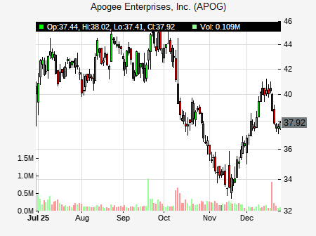 from Stephens issued a price target of $95.00 for APOG on 2025-12-16 22:05:26. The adjusted price target was set to $95.00. At the time of the announcement, APOG was trading at $40.34. The overall price target consensus is at $47.00 with high price of $47.00, low price of $47.00, and median price is at $47.00. APOG currently trades -52.21% versus its 52 week high of $84.59, and 33.15% compared to its 52 week low price of $33.15. Current 50 day moving average is $38.69, and the 200 day moving average is $41.70.