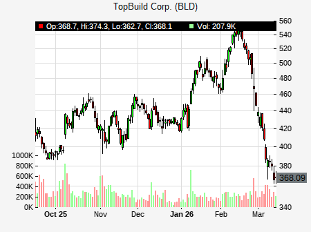 from Seaport Global issued a price target of $620.00 for BLD on 2026-02-13 18:54:37. The adjusted price target was set to $620.00. At the time of the announcement, BLD was trading at $549.07. The overall price target consensus is at $496.16 with high price of $600.00, low price of $390.00, and median price is at $501.48. BLD currently trades 19.36% versus its 52 week high of $461.49, and 266.26% compared to its 52 week low price of $266.26. Current 50 day moving average is $432.12, and the 200 day moving average is $369.72.