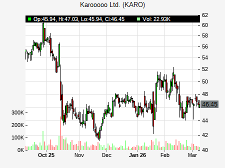 Scott Searle from Roth Capital issued a price target of $62.00 for KARO on 2026-02-17 09:31:12. The adjusted price target was set to $62.00. At the time of the announcement, KARO was trading at $48.57. The overall price target consensus is at $60.00 with high price of $60.00, low price of $60.00, and median price is at $60.00. KARO currently trades -20.98% versus its 52 week high of $61.70, and 35.63% compared to its 52 week low price of $35.63. Current 50 day moving average is $49.00, and the 200 day moving average is $47.05.