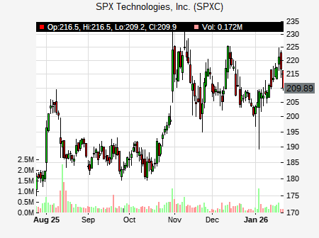 from Truist Financial issued a price target of $216.00 for SPXC on 2025-12-18 14:34:03. The adjusted price target was set to $216.00. At the time of the announcement, SPXC was trading at $214.87. The overall price target consensus is at $211.33 with high price of $220.00, low price of $205.00, and median price is at $209.00. SPXC currently trades -7.87% versus its 52 week high of $233.71, and 117.71% compared to its 52 week low price of $117.71. Current 50 day moving average is $198.12, and the 200 day moving average is $168.66.