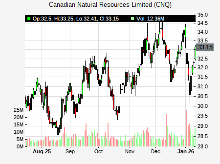 from Goldman Sachs issued a price target of $35.00 for CNQ on 2026-01-02 09:32:39. The adjusted price target was set to $35.00. At the time of the announcement, CNQ was trading at $33.85. The overall price target consensus is at $53.45 with high price of $63.66, low price of $44.56, and median price is at $52.92. CNQ currently trades -2.93% versus its 52 week high of $34.97, and 24.09% compared to its 52 week low price of $24.09. Current 50 day moving average is $32.03, and the 200 day moving average is $30.32.
