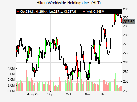 from Robert W. Baird issued a price target of $275.00 for HLT on 2025-10-17 13:22:35. The adjusted price target was set to $275.00. At the time of the announcement, HLT was trading at $258.23. The overall price target consensus is at $290.50 with high price of $300.00, low price of $286.00, and median price is at $288.00. HLT currently trades -7.29% versus its 52 week high of $279.81, and 199.47% compared to its 52 week low price of $199.47. Current 50 day moving average is $267.78, and the 200 day moving average is $252.94.