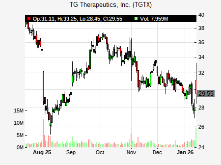 from Goldman Sachs issued a price target of $39.00 for TGTX on 2026-01-15 00:51:04. The adjusted price target was set to $39.00. At the time of the announcement, TGTX was trading at $29.54. The overall price target consensus is at $60.00 with high price of $60.00, low price of $60.00, and median price is at $60.00. TGTX currently trades -36.42% versus its 52 week high of $46.48, and 26.14% compared to its 52 week low price of $26.14. Current 50 day moving average is $33.83, and the 200 day moving average is $34.91.