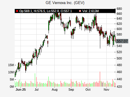from Morgan Stanley issued a price target of $710.00 for GEV on 2025-10-30 12:55:23. The adjusted price target was set to $710.00. At the time of the announcement, GEV was trading at $577.97. The overall price target consensus is at $673.36 with high price of $758.00, low price of $475.00, and median price is at $690.00. GEV currently trades -15.07% versus its 52 week high of $677.00, and 256.61% compared to its 52 week low price of $256.61. Current 50 day moving average is $608.88, and the 200 day moving average is $477.80.