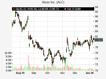 from Stifel Nicolaus issued a price target of $80.00 for ALC on 2026-01-09 02:29:24. The adjusted price target was set to $80.00. At the time of the announcement, ALC was trading at $80.62. The overall price target consensus is at $92.35 with high price of $101.09, low price of $85.00, and median price is at $91.00. ALC currently trades -18.35% versus its 52 week high of $98.85, and 71.55% compared to its 52 week low price of $71.55. Current 50 day moving average is $77.19, and the 200 day moving average is $83.90.