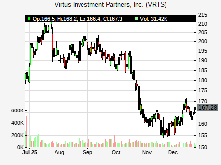 Crispin Love from Piper Sandler issued a price target of $218.00 for VRTS on 2025-12-23 09:46:08. The adjusted price target was set to $218.00. At the time of the announcement, VRTS was trading at $164.55. The overall price target consensus is at $163.00 with high price of $168.00, low price of $158.00, and median price is at $163.00. VRTS currently trades -32.22% versus its 52 week high of $243.70, and 140.42% compared to its 52 week low price of $140.42. Current 50 day moving average is $175.33, and the 200 day moving average is $177.46.