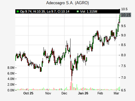 Citigroup analyst issues BUY recommendation for AGRO on February 16, 2026 04:55PM ET. AGRO was trading at $8.65 at issue of the analyst recommendation. The overall analyst consensus : HOLD. Current analyst recommendations are : 3 - Buy, 4 - Hold, 1 - Sell recommendations .