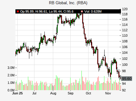 from National Bank issued a price target of $124.00 for RBA on 2025-11-24 02:01:43. The adjusted price target was set to $124.00. At the time of the announcement, RBA was trading at $96.22. The overall price target consensus is at $124.00 with high price of $124.00, low price of $124.00, and median price is at $124.00. RBA currently trades -19.54% versus its 52 week high of $119.58, and 86.78% compared to its 52 week low price of $86.78. Current 50 day moving average is $104.30, and the 200 day moving average is $104.44.