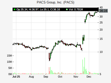 from Truist Financial issued a price target of $40.00 for PACS on 2025-12-12 14:46:25. The adjusted price target was set to $40.00. At the time of the announcement, PACS was trading at $33.885. The overall price target consensus is at $33.00 with high price of $33.00, low price of $33.00, and median price is at $33.00. PACS currently trades 3.97% versus its 52 week high of $32.59, and 8.15% compared to its 52 week low price of $8.15. Current 50 day moving average is $14.53, and the 200 day moving average is $12.09.