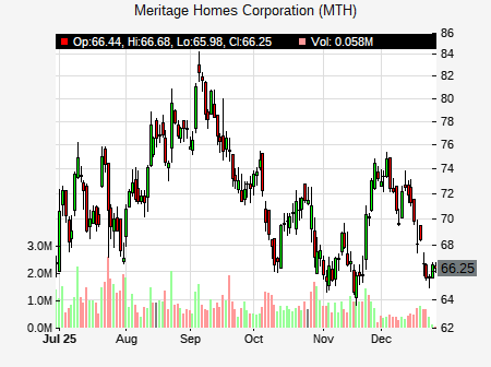 from Evercore ISI issued a price target of $77.00 for MTH on 2025-12-04 12:49:38. The adjusted price target was set to $77.00. At the time of the announcement, MTH was trading at $74.66. The overall price target consensus is at $91.50 with high price of $101.00, low price of $82.00, and median price is at $91.50. MTH currently trades -22.41% versus its 52 week high of $96.44, and 60.61% compared to its 52 week low price of $60.61. Current 50 day moving average is $69.76, and the 200 day moving average is $69.94.
